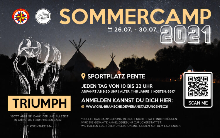 TRIUMPH! Für alle von 11 – 16 Jahre. Wir wollen mit dir eine unvergessliche Woche im Freien erleben und dafür musst du kein Camper oder Ranger sein. Aufgeteilt in verschiedenen Teams werdet ihr gemeinsam die ein oder andere abenteuerliche Herausforderung meistern und unter Leitung von erfahrenen Rangern sogar eure eigenen Bauwerke aus Holz erstellen. …
